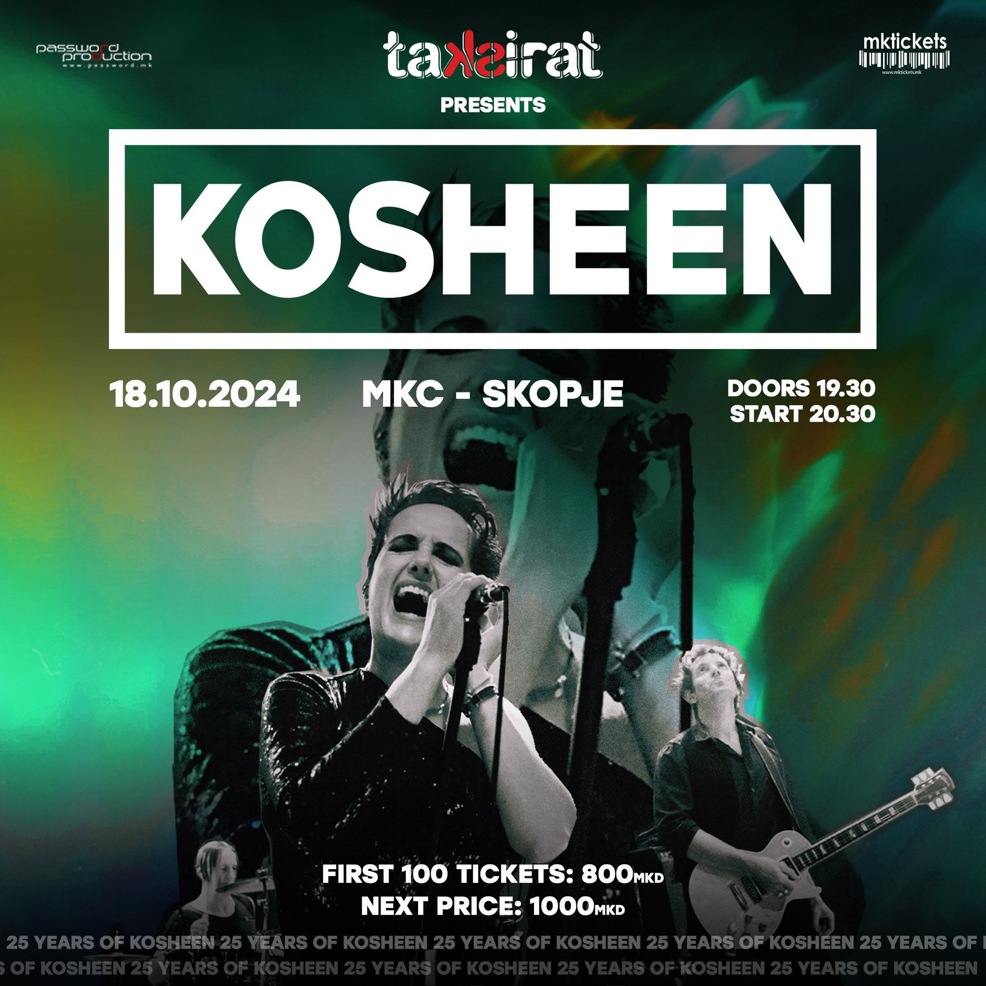 One of the most successful and impressive British electro bands, "Koshin", arrives in Skopje with a solo concert with which the group celebrates 25 years of career. As part of the off-program of the 26th edition of TAXIRATE FESTIVAL, this concert will be held on October 18 at the Youth Cultural Center, starting at 8:30 PM.