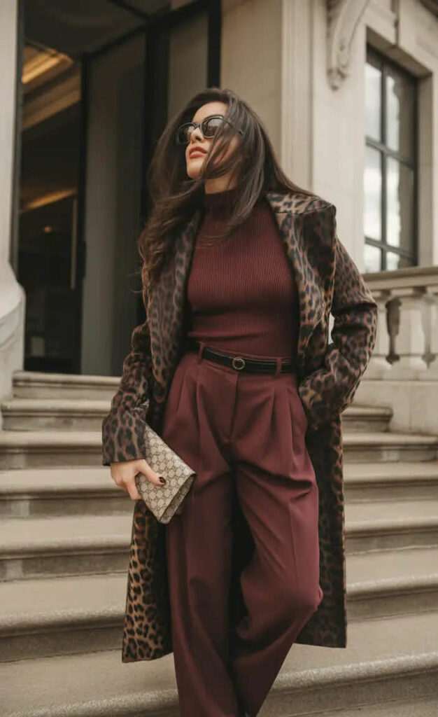 Оваа сезона, леопард мотивите се присутни на палта, капути, панталони, чанти и дури и на чизми. Дизајнерите играат со текстури,волнени материјали, сатен, кожа и свила ,создавајќи впечатливи комбинации што внесуваат топлина и карактер во секој стајлинг.
