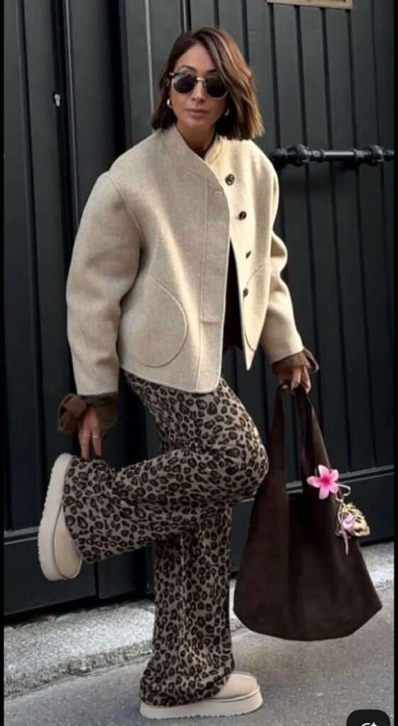 Комбинирајте го со беж, црна, маслинеста или бордо боја, за да ја нагласите природната топлина на есента. А ако сакате современ пресврт – пробајте го во неочекувани нијанси, како сива или темно сина. Леопрад принтот не е само тренд. Тој е став, расположение и приказна за жена која знае што сака. Оваа есен не се криеме – се истакнуваме!