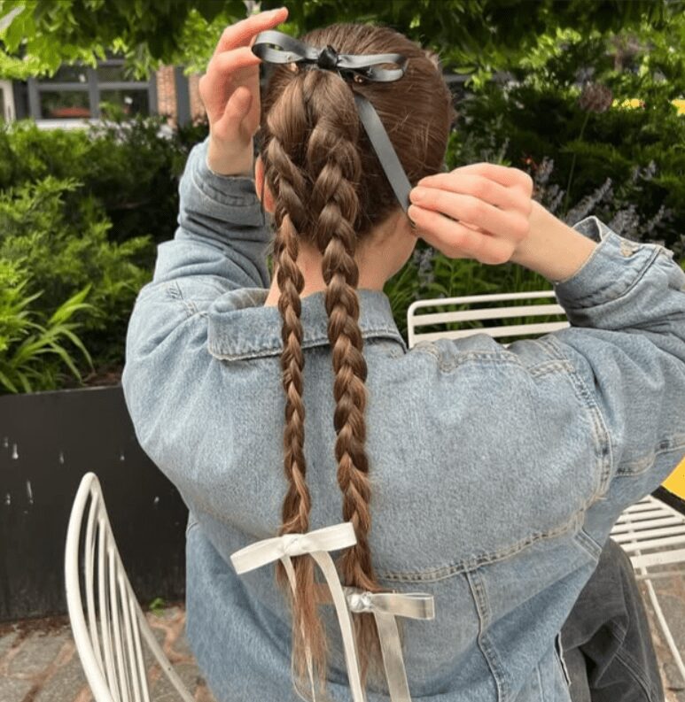 Hairstyles with bows and double braids are a great choice for an elegant, yet playful look. This combination is the ideal choice for special occasions or everyday fashion statements. The braids add texture and an interesting visual effect, while the bow adds femininity. This hairstyle can be combined with different clothing styles.