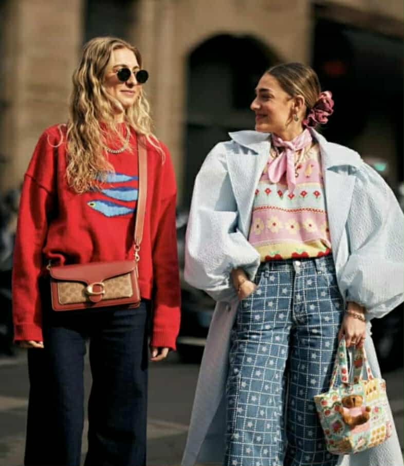 Малите акценти во црвена боја – чанта, обувки или кармин – ја разигруваа секоја комбинација. Романтичните елементи и пастелни нијанси се вратија на голема врата, внесувајќи мекост и нежност во урбаниот стил.
