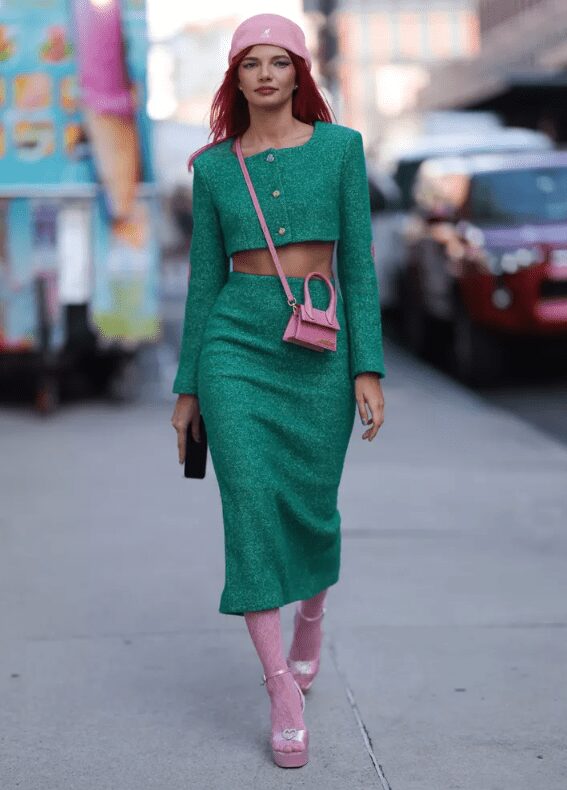 For a real fashion statement, combine several bold colors, including tights as an additional accent. This technique increases the visual dynamism of your outfit.