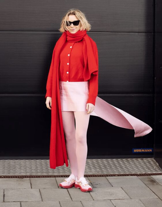 For an elegant and neat style, pair tights with clothing in the same color. This approach creates a completely coordinated and striking look without too much effort.
