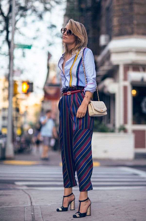 За средината на работната недела одбираме карирани панталони во сини и бордо нијанси. Панталоните ги спојуваме со светло сина кошула со жолто-син дезен.