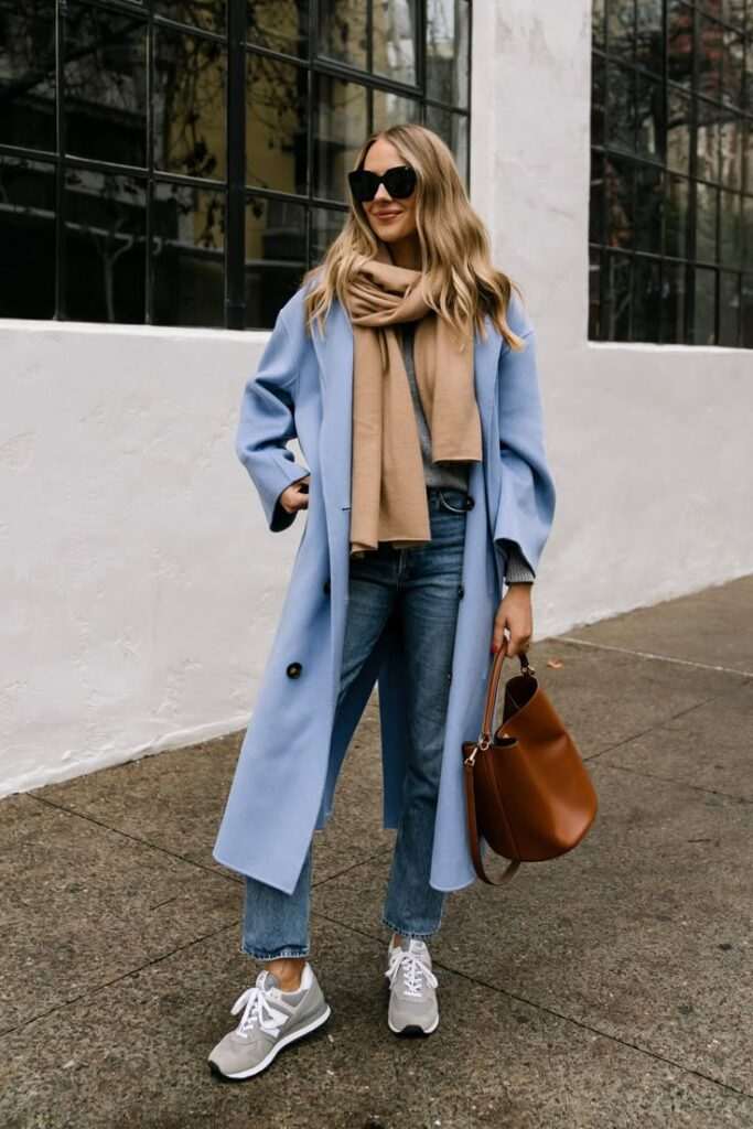 Tuesday in a pastel blue coat For this Tuesday, we have classic jeans combined with a gray sweater. To complete the outfit, we have a light blue coat and a cappuccino scarf. We round off the styling with gray sneakers and a brown bag. We wish you a nice Tuesday. Photo: Pinterest Previous Article French reality star Melanie Da Cruz won at Paris Fashion Week wearing a creation by ELENA LUKA Next Article Unique and delicious: Baked pears with oats, walnuts and cinnamon