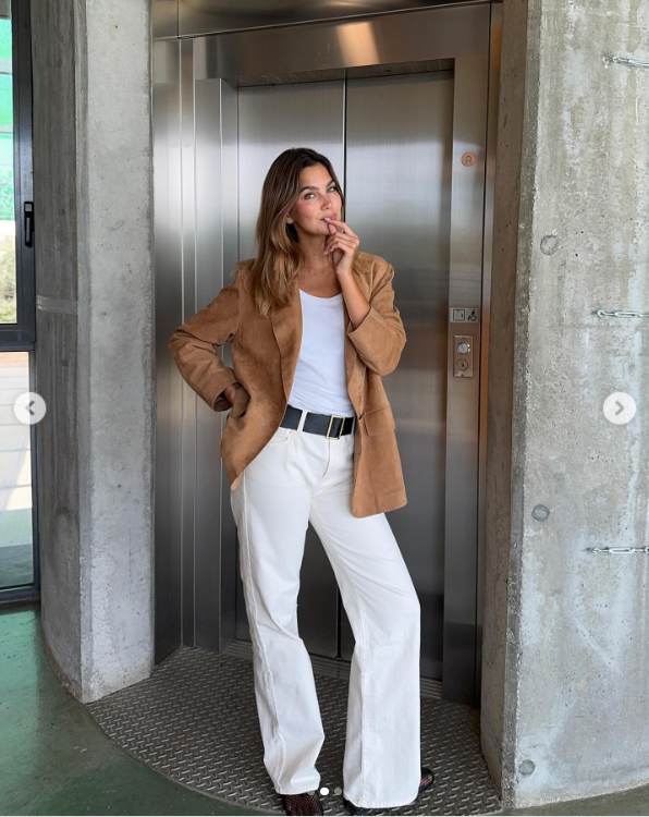 Марија неретко одбира и елегантен oversized блејзер којшто го комбинира со бела маичка.