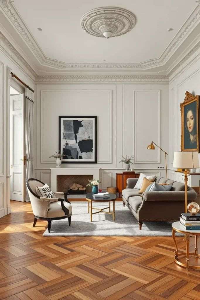 Французите претпочитаат смирена и елегантна палета. Тука во игра се неутрални нијанси како бела, крем, беж и светло сива. Овие бои создаваат светол и воздушен простор, а може да се надополнат со пастелни тонови или дискретни златни акценти за дополнителна софистицираност.
