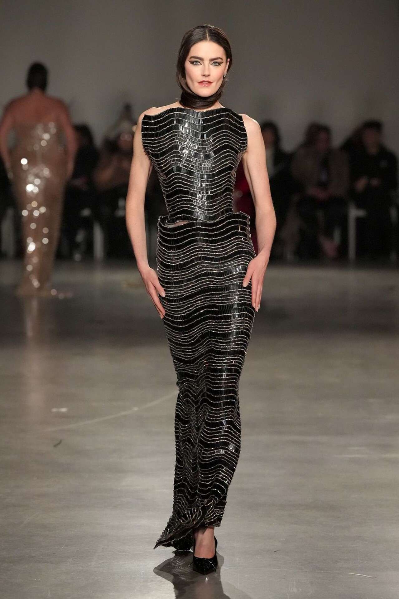 Моделот Коко Роша ја носеше оваа креација низ пистата, предизвикувајќи громогласни аплаузи и повторно потврдувајќи го Siriano како мајстор на дизајнот што ги слави разликите и ги прави сите да се чувствуваат убаво и самоуверено.