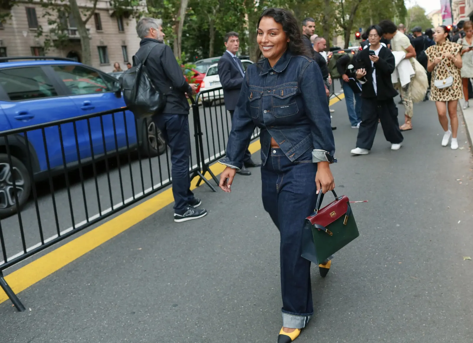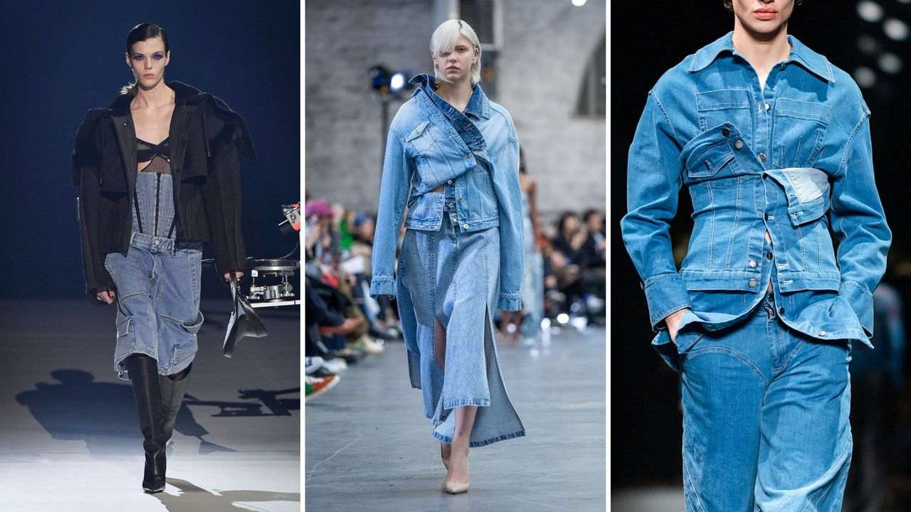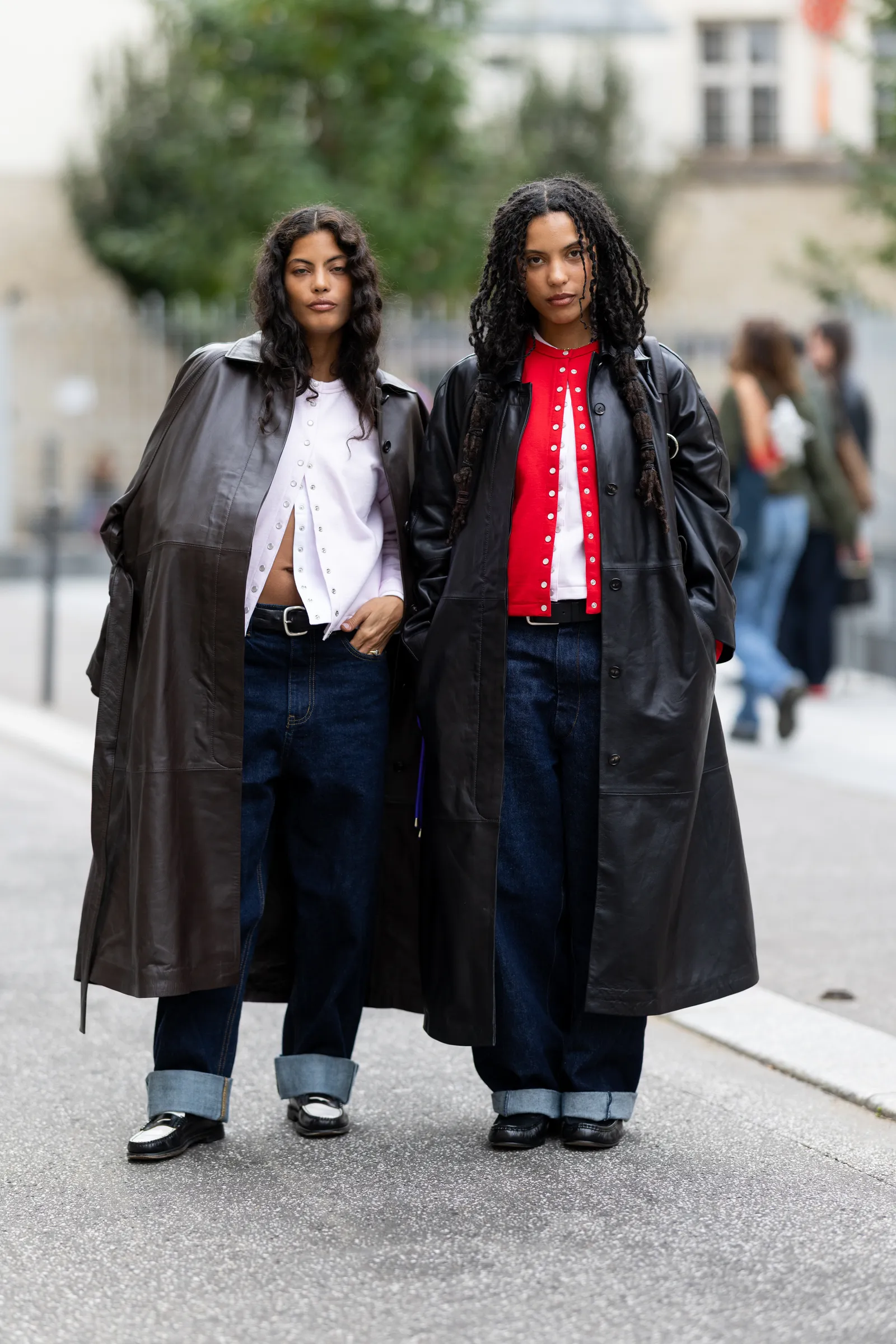 А што се однесува до идеите за стилизирање на деним што се појавија и на пистите и надвор од ревиите за време на Модниот месец? Комбинираниот тексас (познат и како „Canadian Tuxedo“) продолжи да биде проверена и омилена комбинација за неформален моделски изглед, додека фармерките со прав крој се носеа со сè — од кошули, до основни парчиња и волуменозни палта. Кога станува збор за нијансите, 2025 ја донесе во преден план темната индиго боја и гранџ финишите: цврстиот selvedge деним, на пример, беше особено популарен.