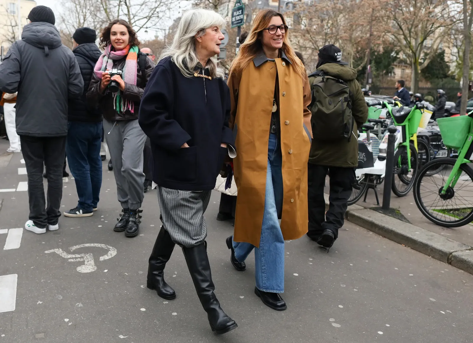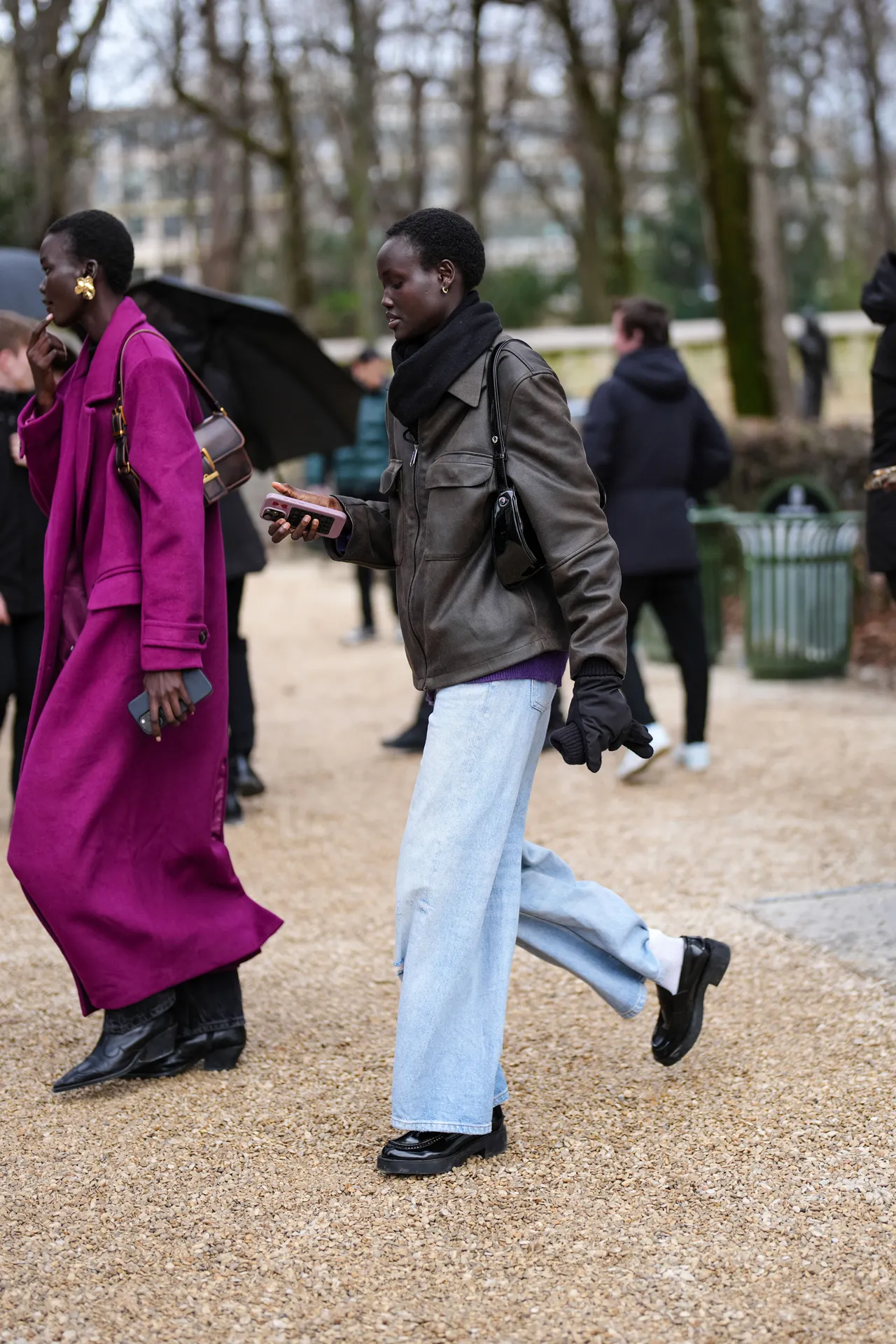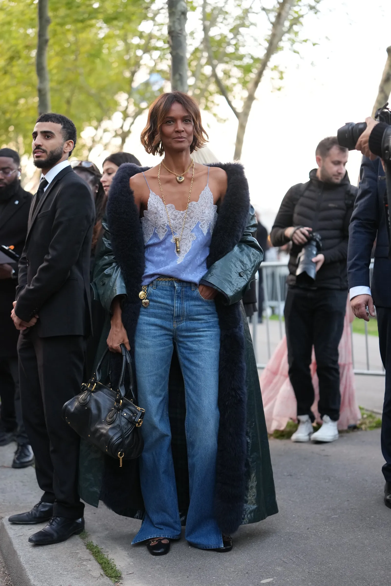 А што се однесува до идеите за стилизирање на деним што се појавија и на пистите и надвор од ревиите за време на Модниот месец? Комбинираниот тексас (познат и како „Canadian Tuxedo“) продолжи да биде проверена и омилена комбинација за неформален моделски изглед, додека фармерките со прав крој се носеа со сè — од кошули, до основни парчиња и волуменозни палта. Кога станува збор за нијансите, 2025 ја донесе во преден план темната индиго боја и гранџ финишите: цврстиот selvedge деним, на пример, беше особено популарен.