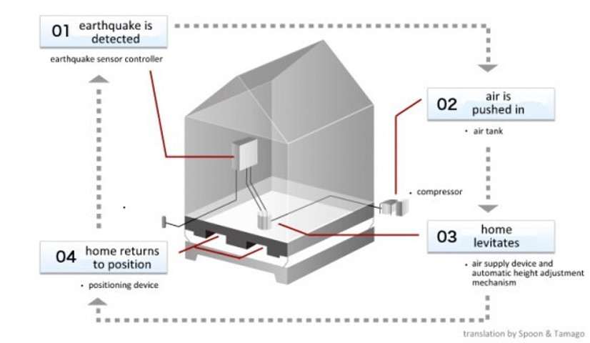 Јапонската архитектура се издвојува по системи што не се борат против земјотресот, туку работат со него.