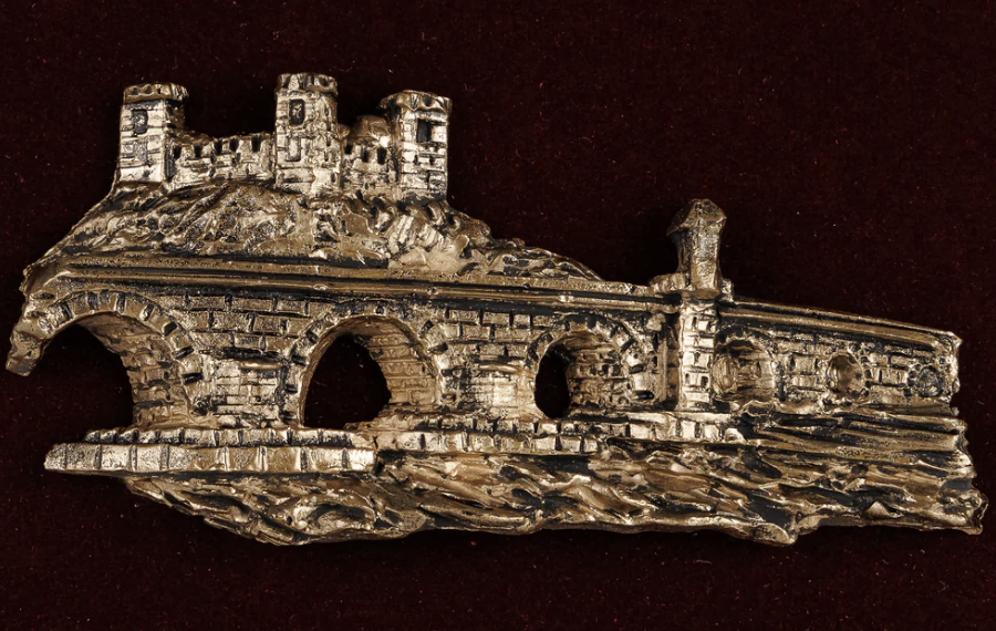 Камениот мост, изграден помеѓу 1451 и 1469 година во времето на султанот Мехмед II Освојувачот, претставува повеќе од мост над Вардар. Тој е врска меѓу епохи, цивилизации и култури. Во модната интерпретација, неговите сводови беа преточени во драматични линии на корсетот и волуменозниот пад на здолништето, додека текстурата на каменот беше пренесена преку метален релјефен вез.