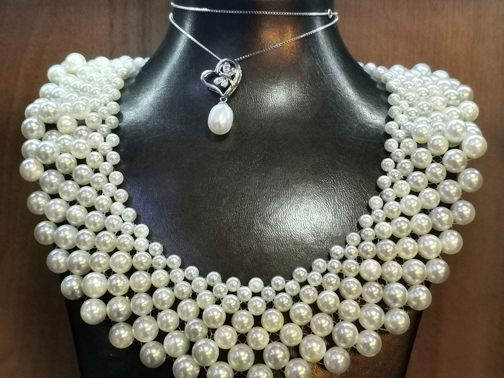 Охридскиот бисер е еден од најпрепознатливите симболи на Македонија, поврзан со традиција, тајна занаетчиска техника и уникатен сјај. Во модната интерпретација, фустанот е изработен како скулптура во бело-сребрени тонови, со стотици бисерни детали распоредени по телото.