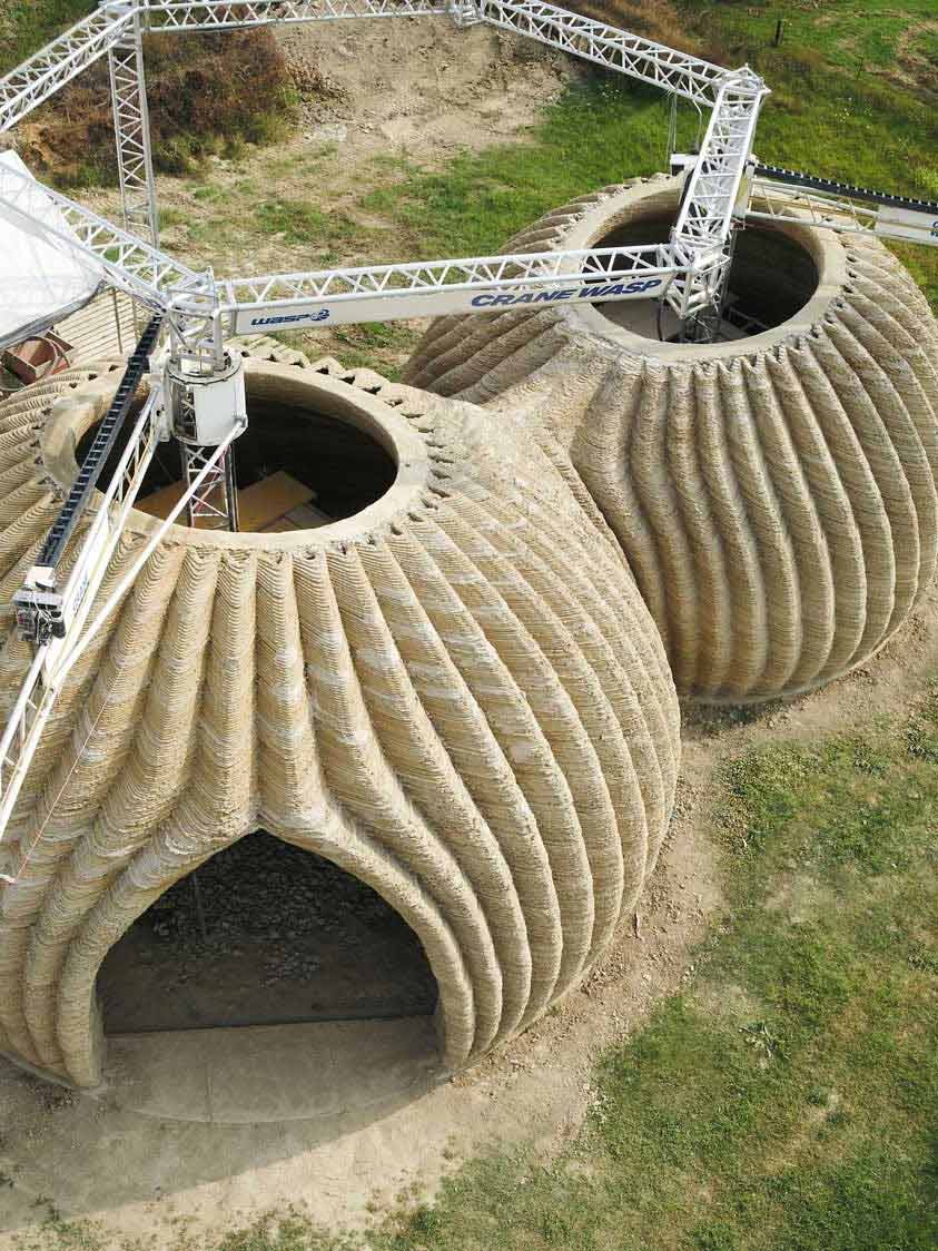 Но технологијата брзо се менува: еколошки варијанти како „Tecla“ куќата — 3D-печатена од локална глина и вода — ја истакнуваат еколошката и одржлива страна на овој тип градби. Овој проект од Италија е првиот дом отпечатен со земја како примарен градежен ресурс, што ја намалува потребата од цемент и увезени материјали.