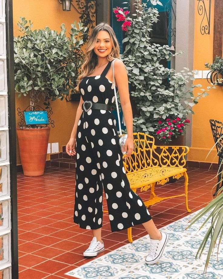 Комбинезон во комбинација со патики е супер избор за дневен аутфит, а ако го споите со потпетици и свилена марама подготвени сте за вечерно излегување.