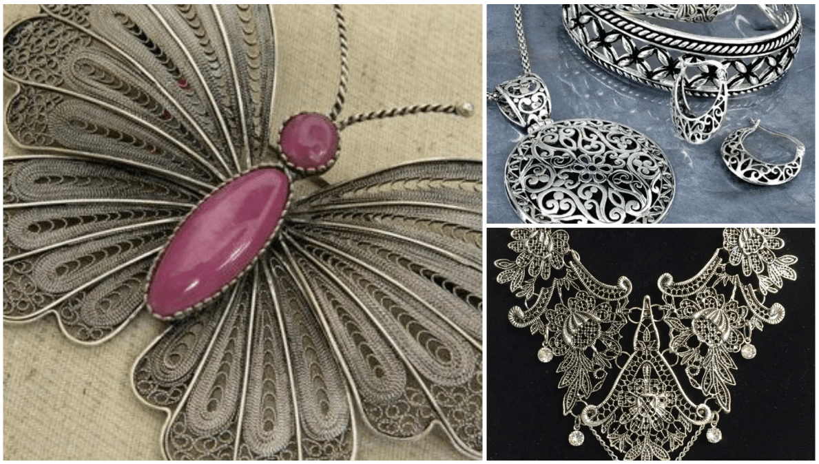 Филигранскиот накит во Македонија вклучува обетки, ѓердани, брошеви и прстени — често со мотиви инспирирани од природата и традицијата. Приврзоци со симболични мотиви (цветови, пеперутки). Украсни и историографски предмети — како што е сребрена пеперутка, којашто е познато парче во Националниот музеј на Македонија.