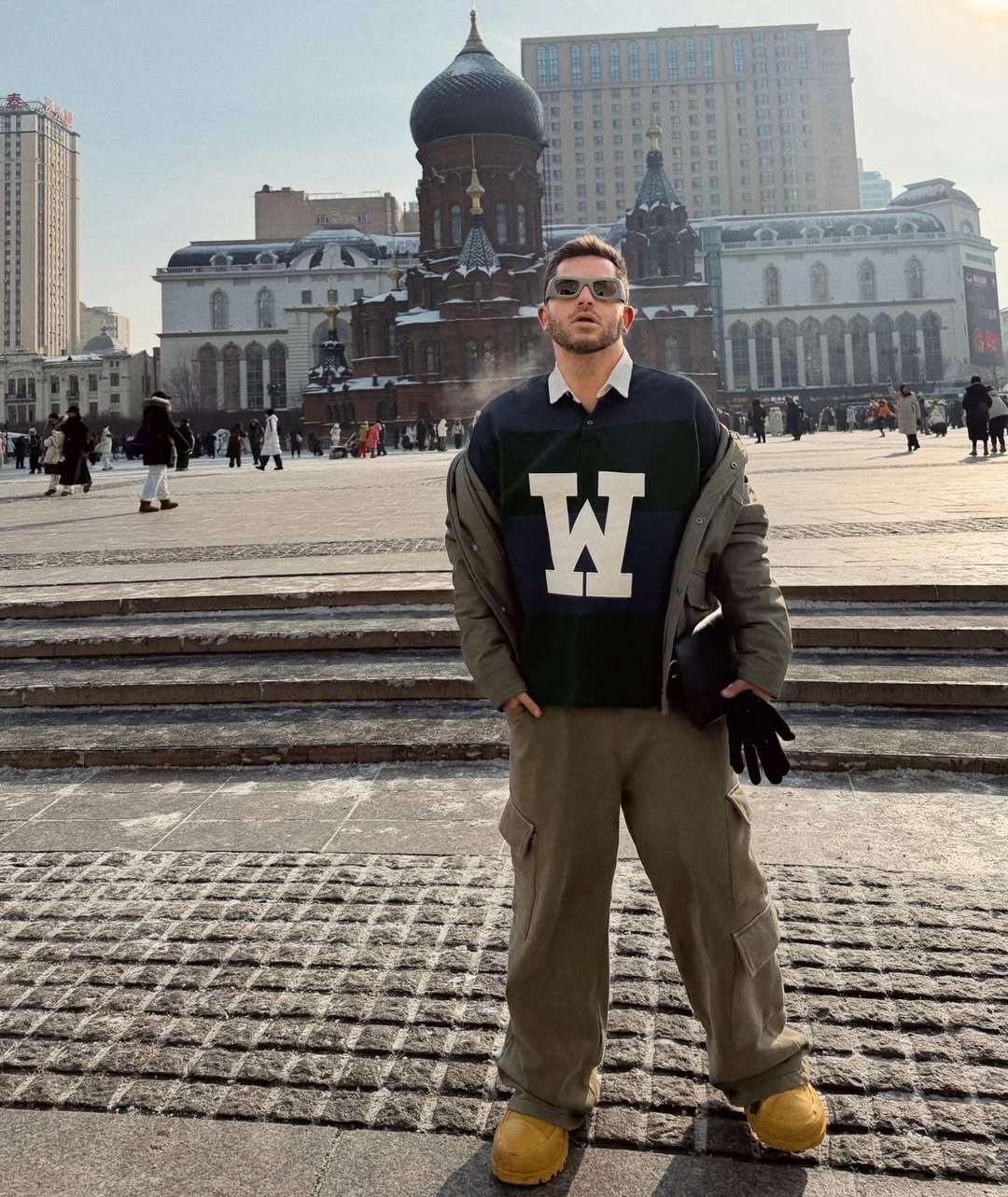 А, нашиот најдобар интернационален фотограф Стефан Соколовски кој подолго време ги фотографира најголемите модни недели во светот како и најпознатите топ модели, моментално е во Кина. Облечен во спортско- елегантна комбинација и внимателно избрана зелена боја, тој доминира со својот изглед.