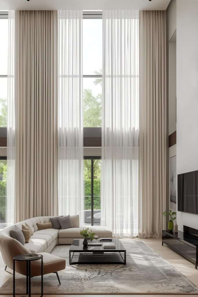 Една од најчестите грешки при изборот на завеси е погрешната должина. Луксузните завеси најчесто паѓаат од плафон до под, визуелно зголемувајќи ја висината на просторијата. Поставувањето на корнизата повисоко од прозорецот создава впечаток на просторност и архитектонска елеганција.