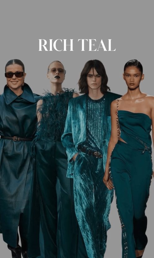 Овој тон, мешавина меѓу длабоко синo и зелено, стана еден од најактуелните за 2026. Светските трендови го прикажуваат ова како пример за „ново неутрално“ што зрачи и живописност и зрелост во едно, идеалео за палта, костими и вечерни силуети.