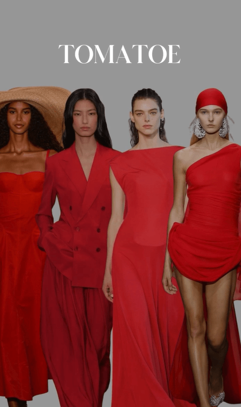 Црвените нијанси со интензивна визуелна тежина („Lava Falls“- Tomato Red) се користат за силни, драматични акценти, парчиња што ги трансформираат наједноставните силуети во моќни изјави на стилот.