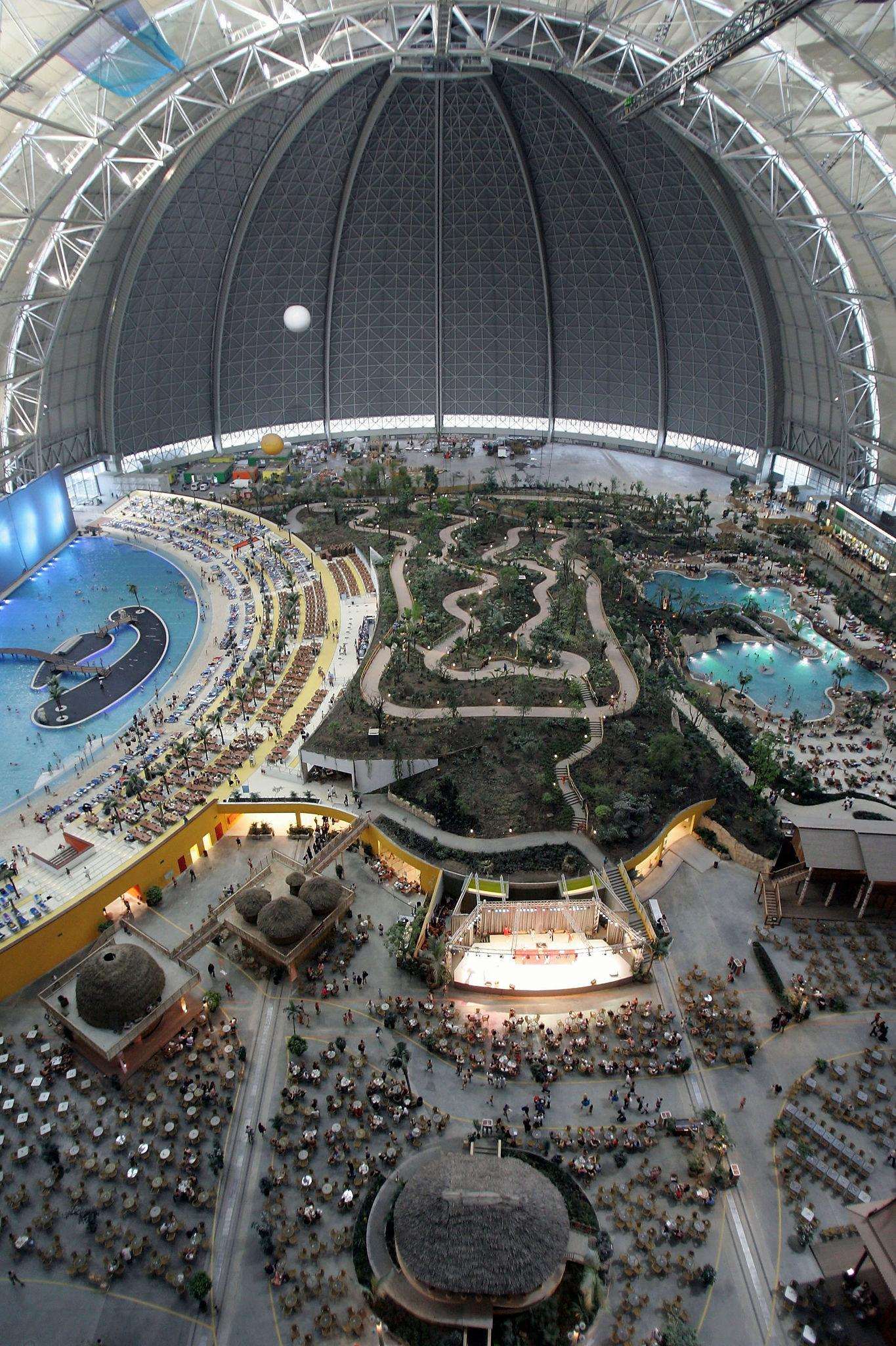 По банкротот на компанијата во 2002 година, овој монументален простор добива нов живот и во 2004 година се трансформира во тропски туристички комплекс. Куполата, позната како „Aerium“, денес важи за една од најголемите самостојни хали во светот и еден од најимпресивните објекти по внатрешен волумен.
