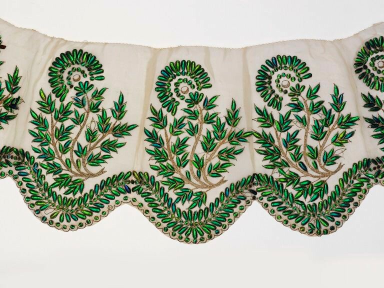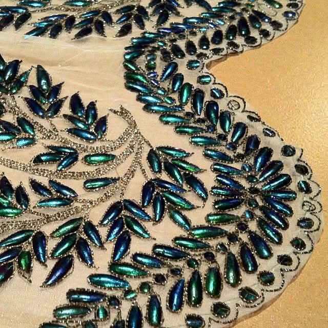 Украсување на текстил со иридесцентни делови на бубачи не е европски изум од 1800‑тите, туку стара занаетчиска техника која се практикувала со генерации во Азија, особено во Индија, Тајланд, Бирма, Кина и Јапонија.
