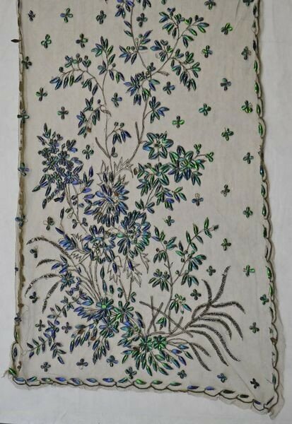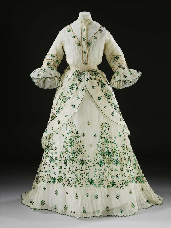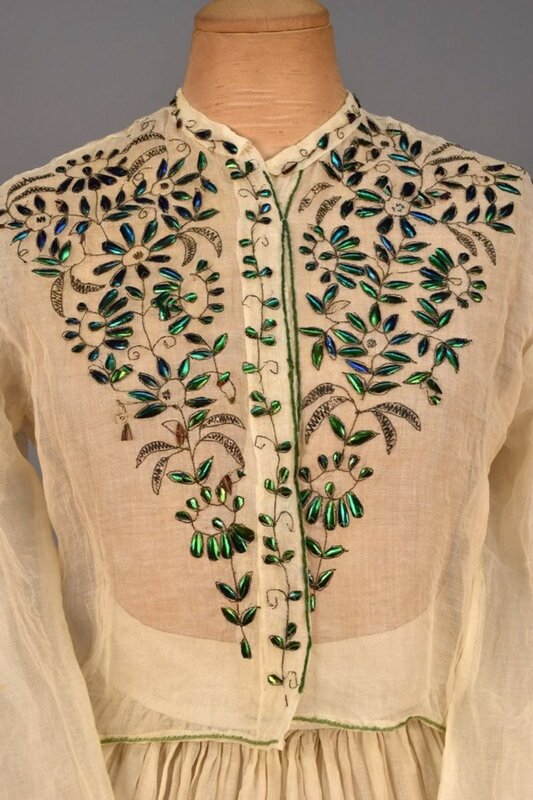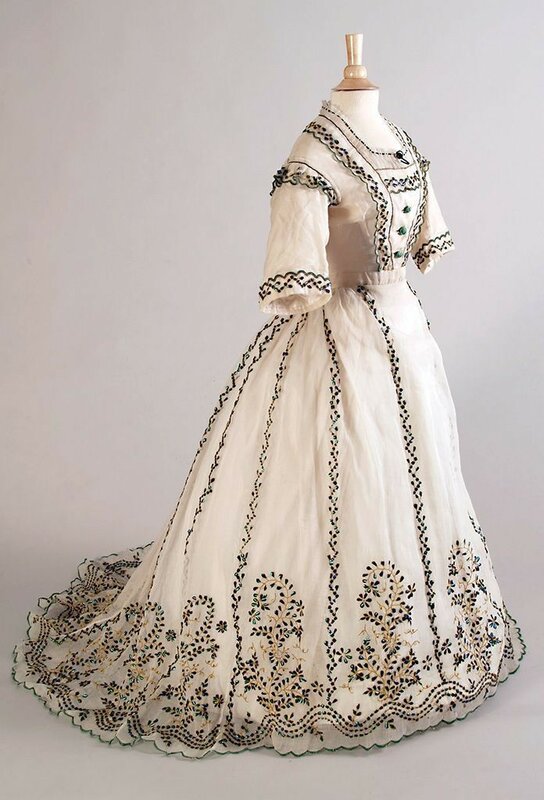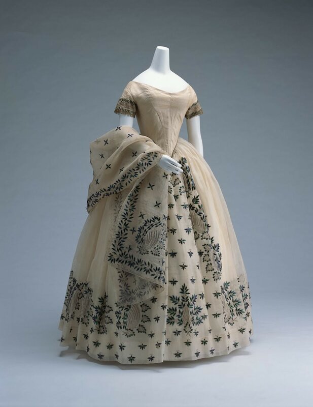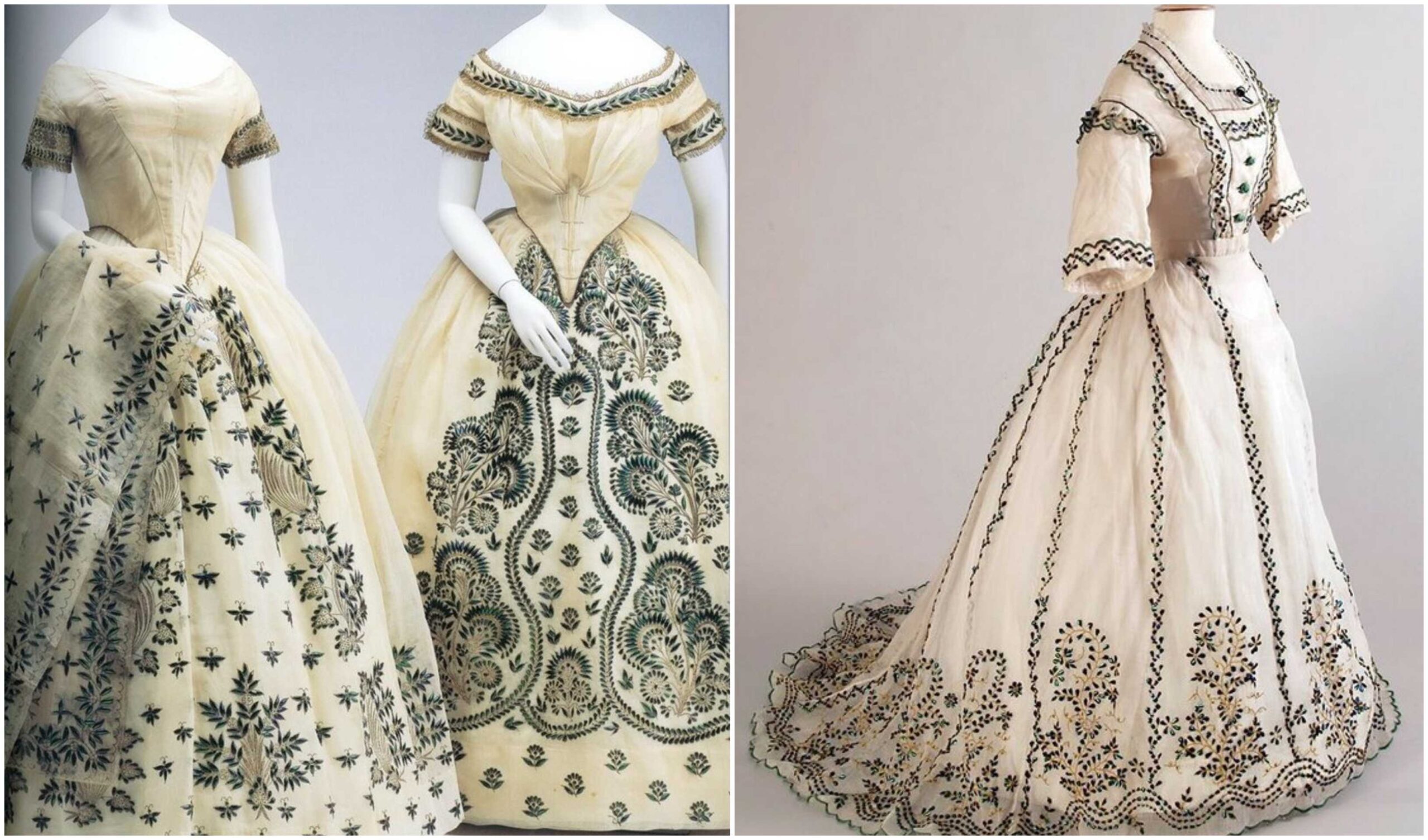 Еден од најпознатите објекти од оваа ера е вечерниот фустан украсен со околу 1.942 елитри и придружна шал со 1.548 елитри, изработени од бел памучен муслин околу 1850 година, пример за тоа колку екстравагантна била популарноста и колку материјали се вложувале.