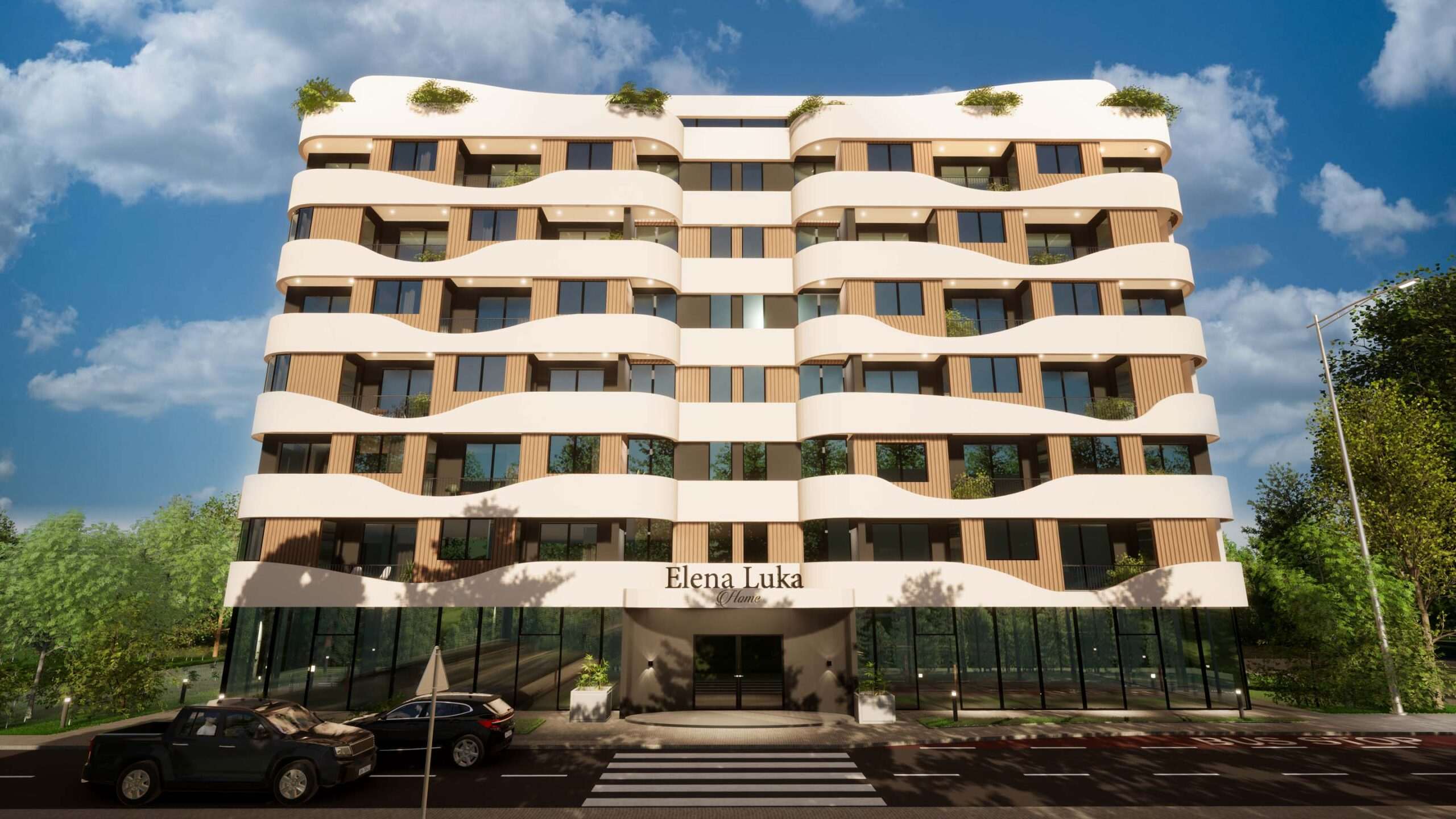 Пример за правилното интегрирање на оградата во објектот е станбено- деловниот објект MELODY на ELENA LUKA HOME кој создаде единстврно уникатно решение. Објектот кореспондира и со околината и со природата и со современите текови.