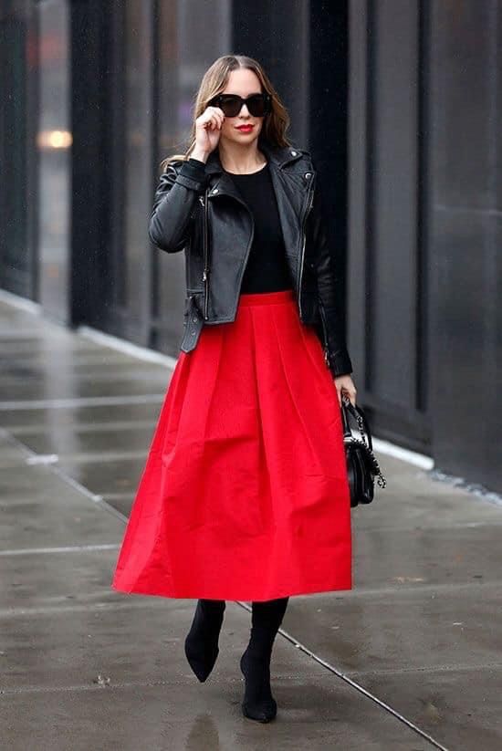 Петок во црвено здолниште Пред крајот на работната недела го разигруваме стајлингот со широко, миди, црвено здолниште. Ова парче облека го дополнуваме со црна блуза и црна кожна јакна. Финишираме со црни чизми на навлекување и чанта во иста боја. Имајте убав викенд. Previous Article Зошто е клучно зградите да имаат сопствена фирма за одржување? No Newer Articles
