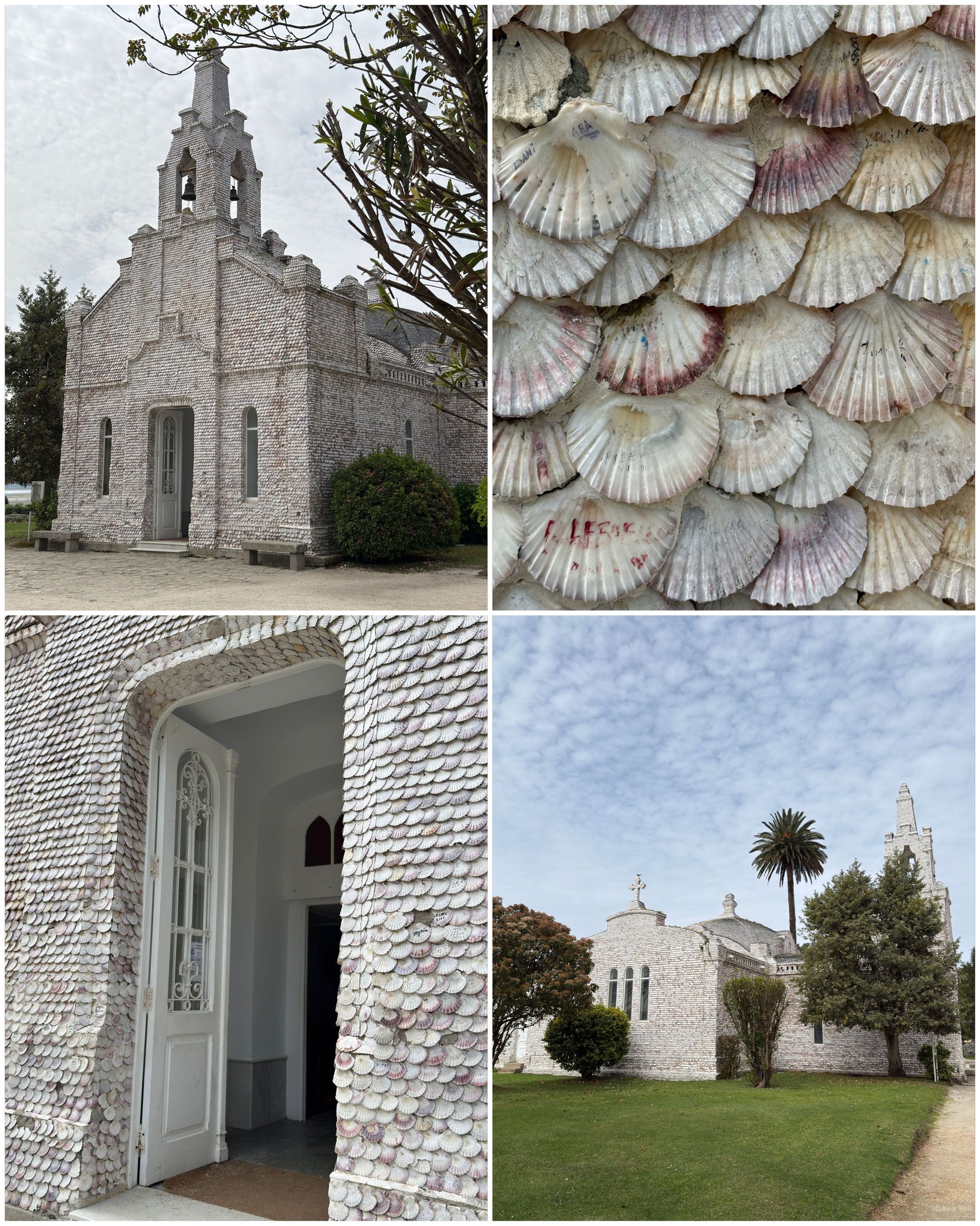 Наместо камен или декоративна керамика, надворешната обвивка на капелата е составена од илјадници школки, внимателно поставени една до друга. Овој слој не е само декоративен гест, туку претставува интелигентен одговор на локалната клима. Близината на океанот носи силна влага, солен воздух и агресивни временски услови, па школките биле употребени како природна заштита на ѕидовите од ерозија и пропаѓање.