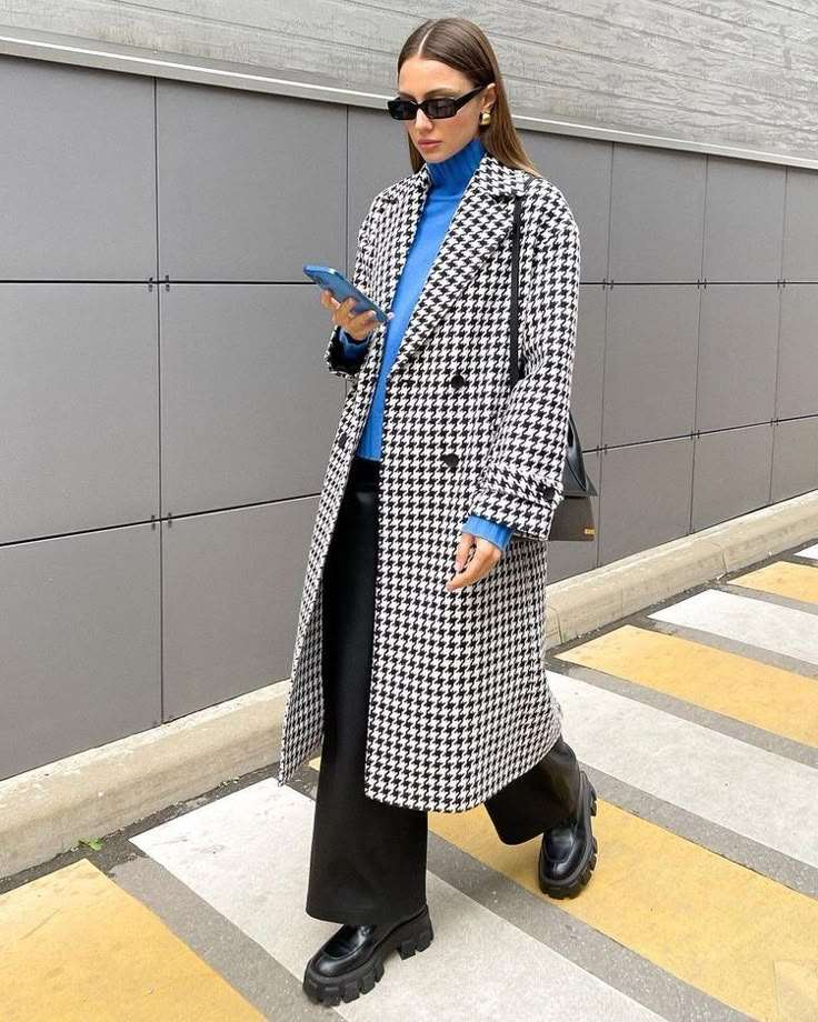 Понеделник е убав ден за капут во пепито дезен којшто сам по себе остава моќен моден впечаток.