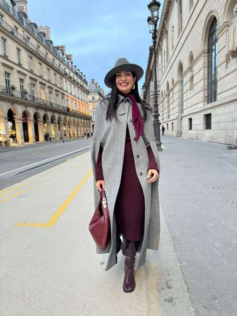 Работната недела ја започнуваме со една од најубавите модни спојки – сива и бордо.