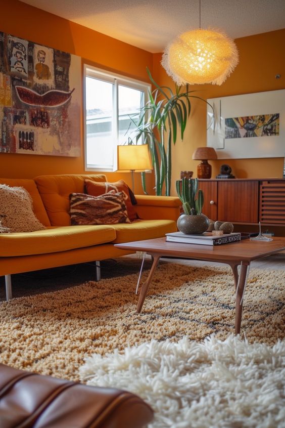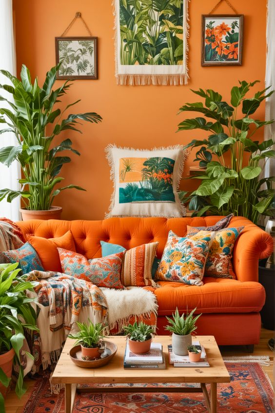 Внесувајќи ја оваа боја во домот, ќе внесете голема доза топлина и комфор. Можете да ја употребите како основа за било која просторија од домот, бојадисувајќи ги ѕидовите во портокалово, а можете да изберете и некој дел од мебелот во оваа топла боја.