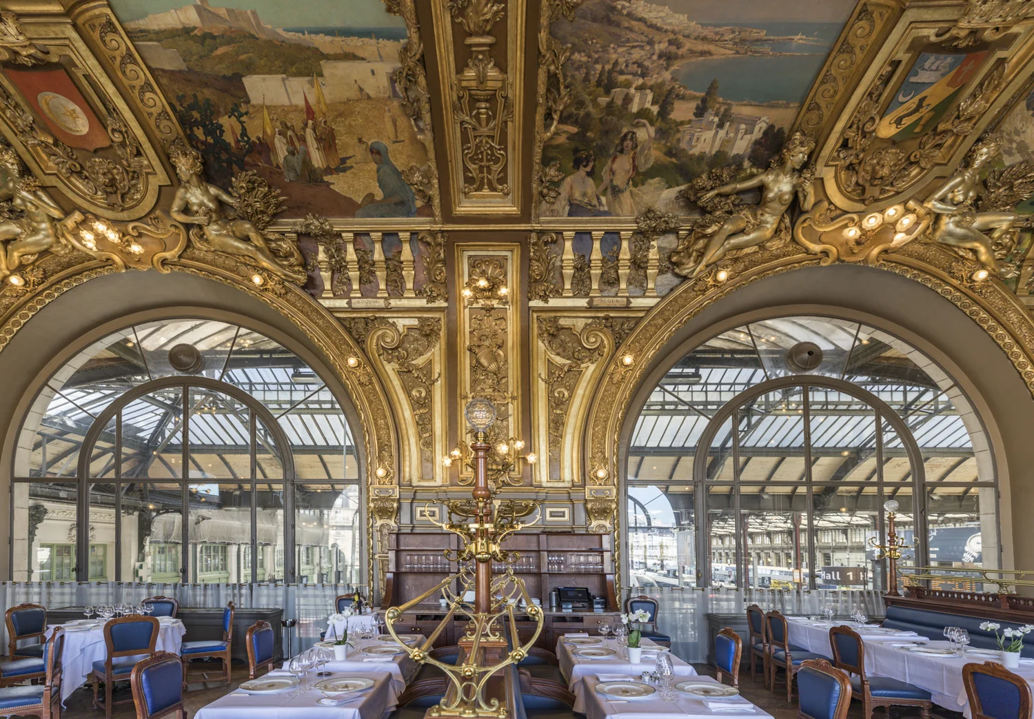 Да се вечера во Le Train Bleu значи да се седи под фрески стари повеќе од сто години, додека под вас минуваат возови со илјадници патници. Тоа е дијалог меѓу движењето и трајноста, меѓу патувањето и останувањето.