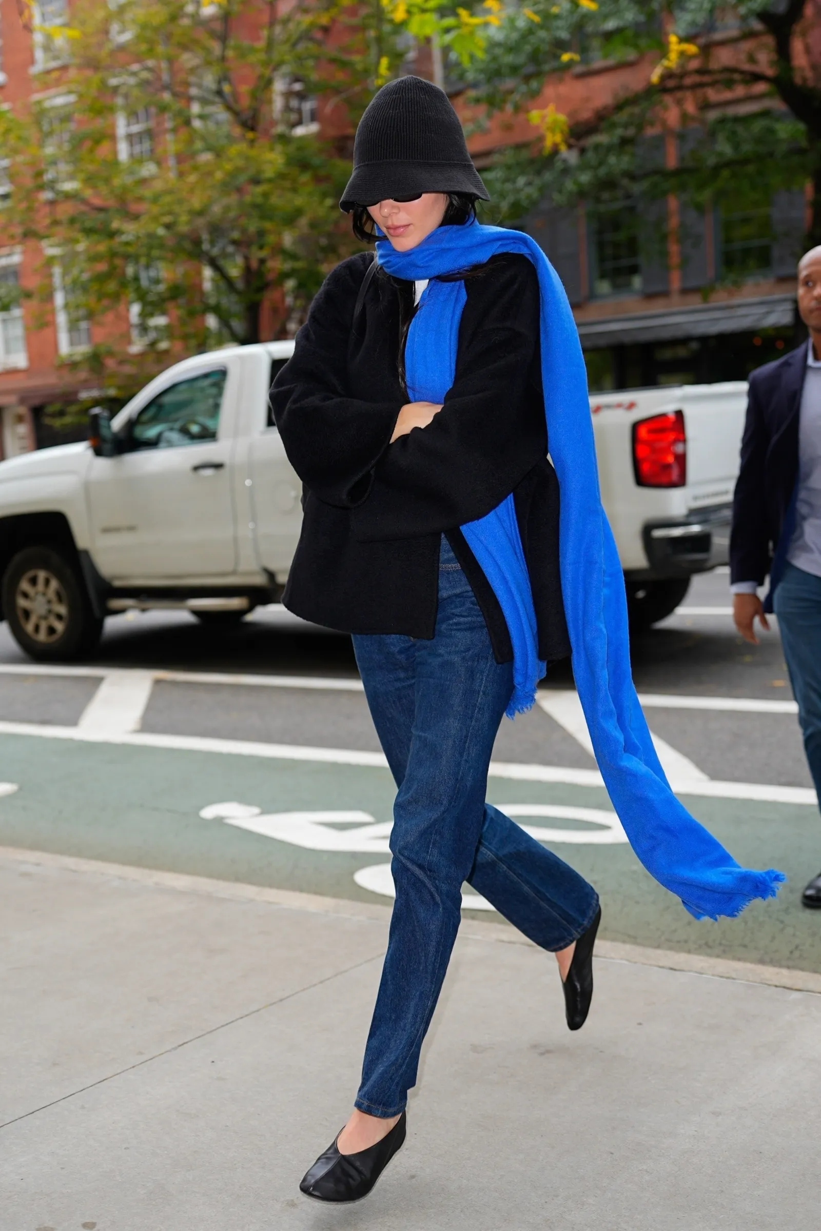 И уличната мода ја прифати оваа боја. Минатата зима, Џенифер Лоренс го замени својот препознатлив црвен акцент со кобалтно син џемпер од The Row, додека Кендал Џенер ја користеше оваа нијанса како впечатлив детал – комбинирајќи шал со фармерки и црна јакна.
