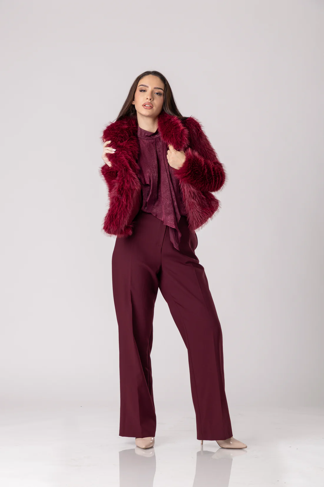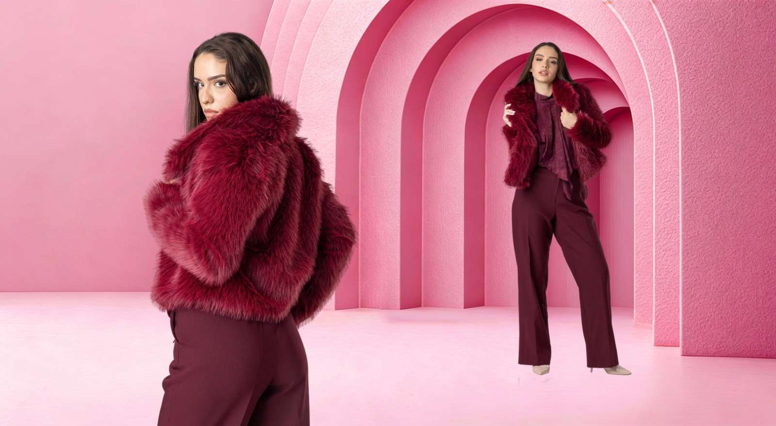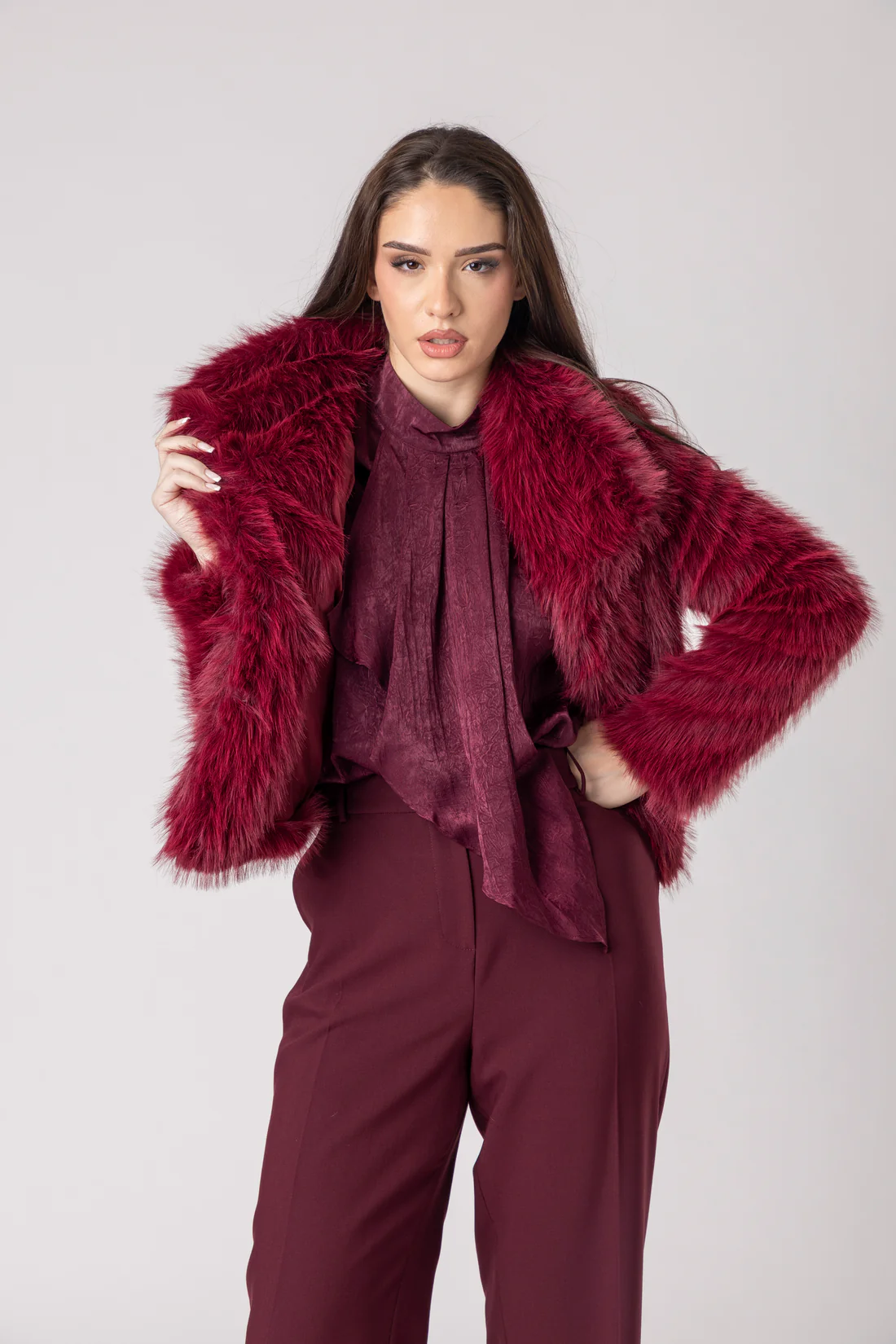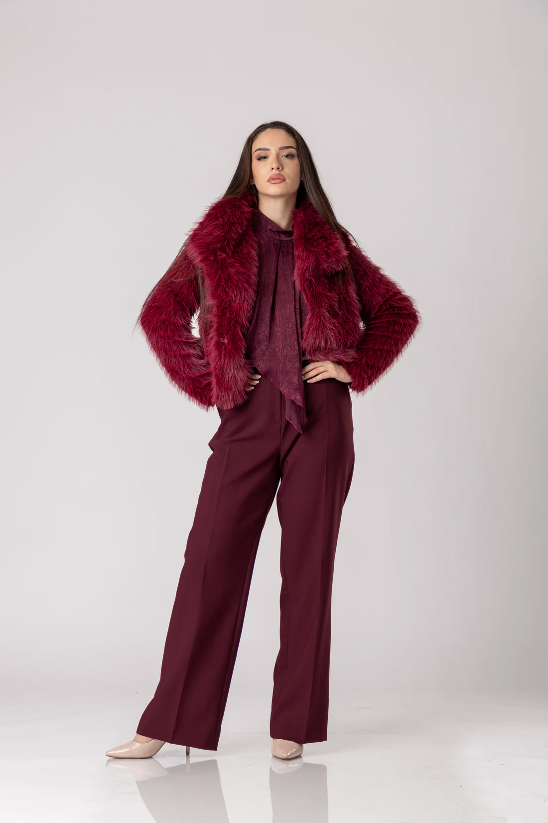Материјалот создава суптилна длабочина во бојата, а површината на крзното носи уреден, контролиран изглед, без потреба од вишок декорација. Должината, која завршува високо на колковите, е внимателно одбрана за да овозможи лесно комбинирање и модерна силуета, елегантна, но никогаш наметлива.