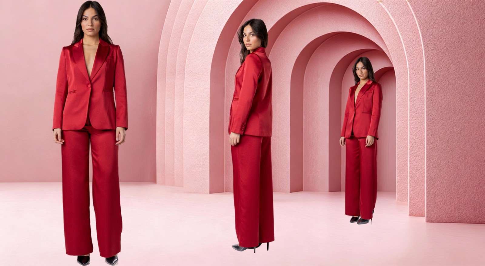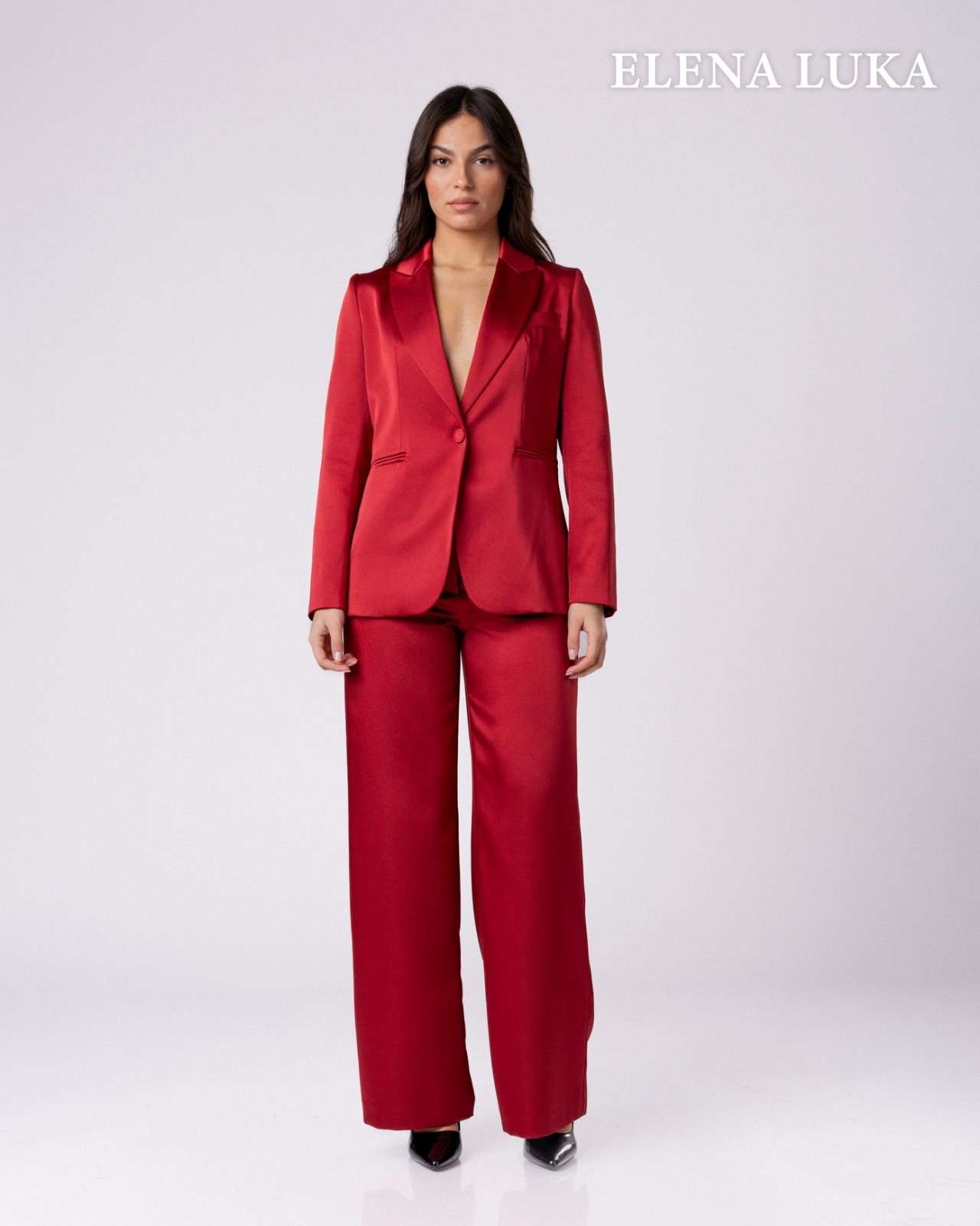 Прецизниот крој ја истакнува секоја линија, но без да создава ригидност, додека богатата нијанса додава длабочина и посебен шарм на секоја појава. Дизајниран да се носи како комплет или да се комбинира одделно, овој костим се прилагодува на различни прилики, од деловни состаноци до елегантни настани и свечености.
