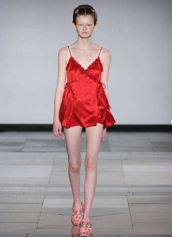 Моделите кои продефилираа на пистата носеа креации коишто на прв поглед изгледаа како незавршени.