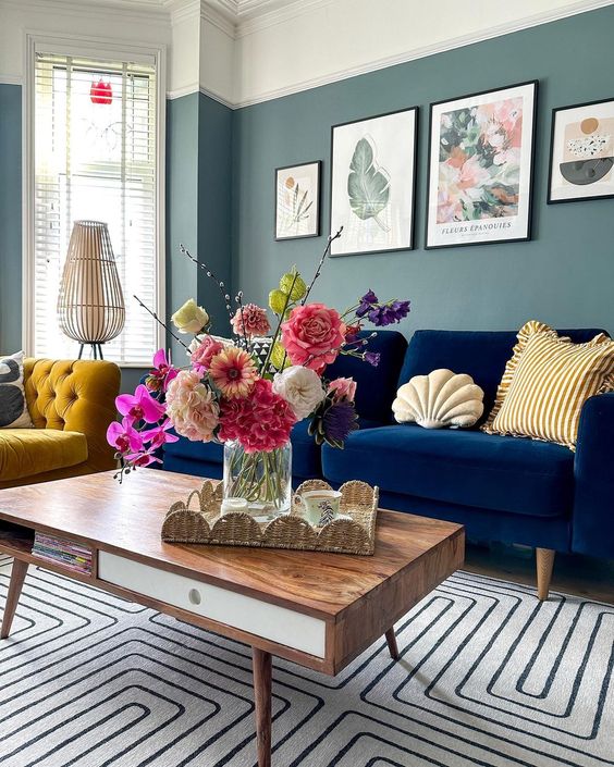 А кога станува збор за ентериерно уредување, сината боја иако е доста “студена” и специфична, може да ни даде чувство на сигурност и удобност, и да го “обои” просторот во кој живееме со свежина.