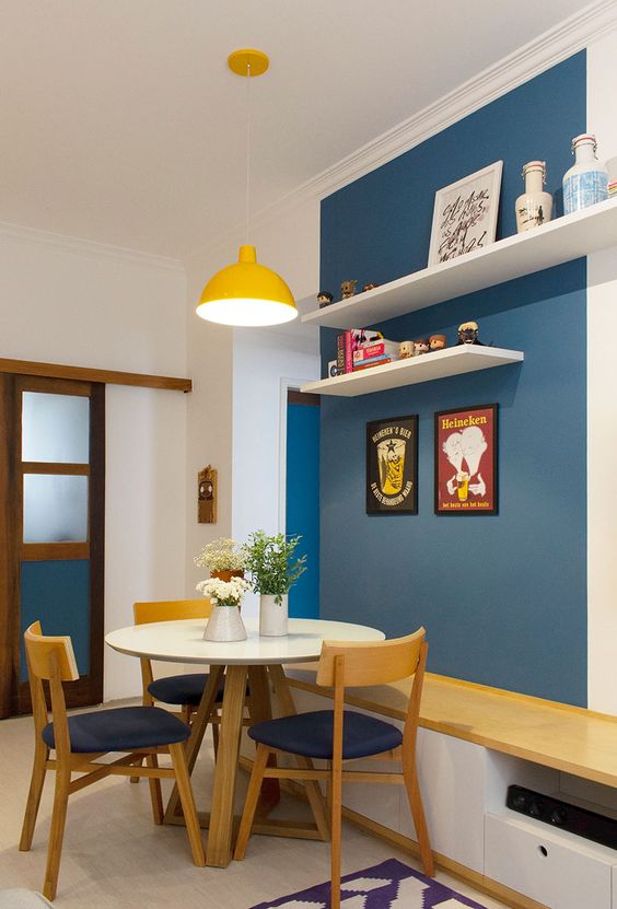 Доколку не сте сигурни во изборот на бојата, започнете со бојадисување само на ѕидовите, а за оние похрабрите, може да ја вклучите сината боја и во дел од мебелот. Исто така, сината боја оди одлично во комбинација со многу бои, па слободно впуштете се во авантура и направете си комбинации по свој вкус.