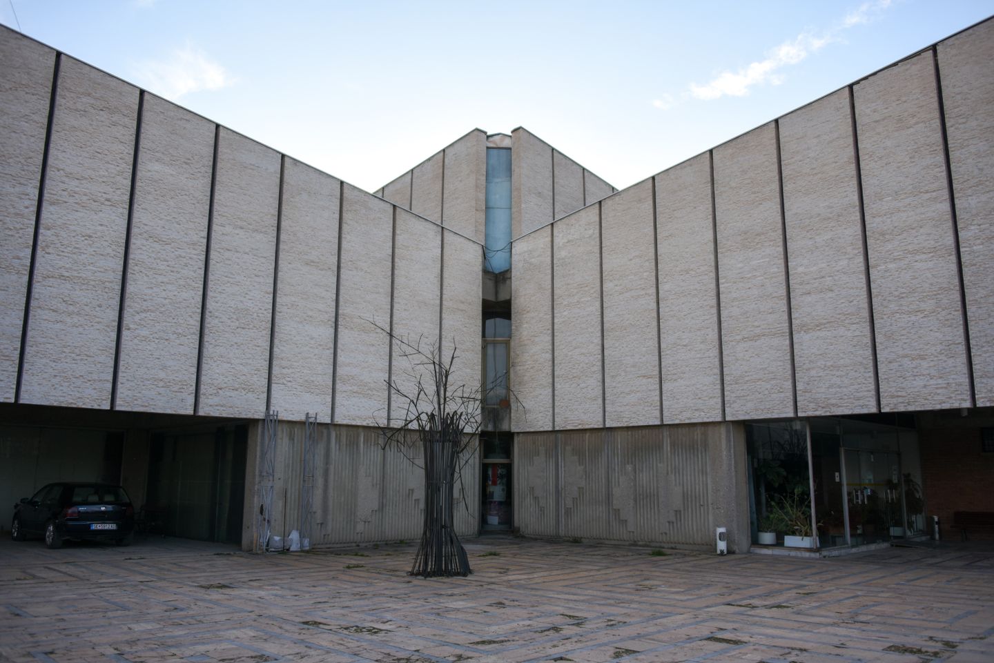 Обликот на зградата е расчленет и динамичен, со низа поврзани волумени и кровни структури кои одговараат на фрагментираниот пејзаж на чаршијата — покриени со различни нивоа, призми и хоризонтални површини кои ја разигруваат просторијата. Горните нивоа на масивите се обработени со застаклени површини, а долниот појас користи бетон и тула, што создава јасна поделба на принципите на материјалност и светлина во просторот.