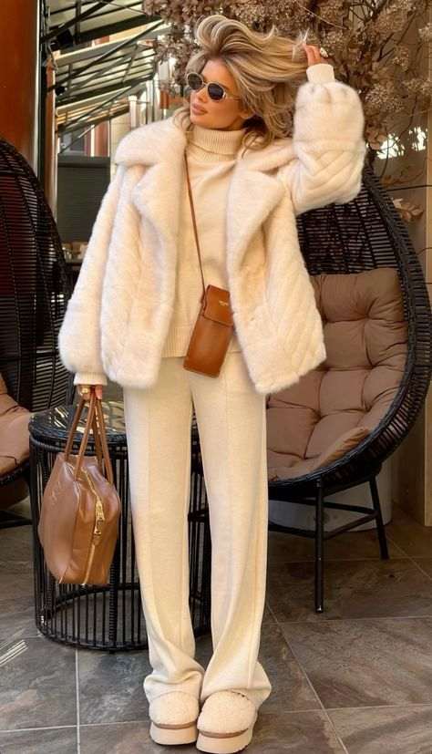 На ова додаваме крем крзнена јакна и меки чевли на потпетица.