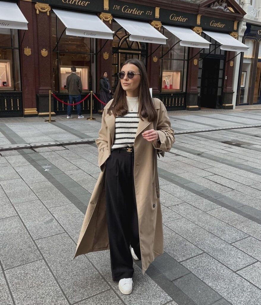 Среда во мантил и патики Денешниот ден го започнуваме со класичен беж мантил. Ова пролетно парче облека го комбинираме со црни панталони и блуза на црно-бели риги. Стајлингот го заокружуваме со бели патики. Имајте среќна среда. Previous Article Моден дует: Mерил Стрип и Ен Хатавеј блеснаа на промоција на Devil Wears Prada 2 Next Article ELENA LUKA со фустан кој ќе го посака секоја матурантка
