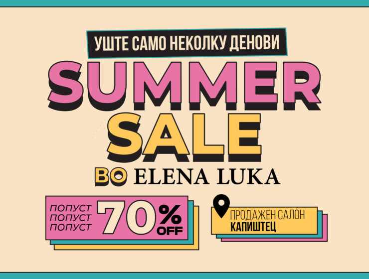 ЕЛЕНА ЛУКА со финална SUMMER SALE акција и 70% попуст на целата летна колекција Модниот бренд ЕЛЕНА ЛУКА летово имаше голема распродажба на целиот летен асортиман во својот продажен…