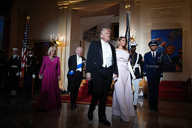 Кога Меланија Трамп зачекори пак на државната вечера заедно со Доналд Трамп, пречекувајќи ги кралот Чарлс III и кралицата Камила, просторијата не го забележа само нејзиното присуство. Таа за миг замолкна.