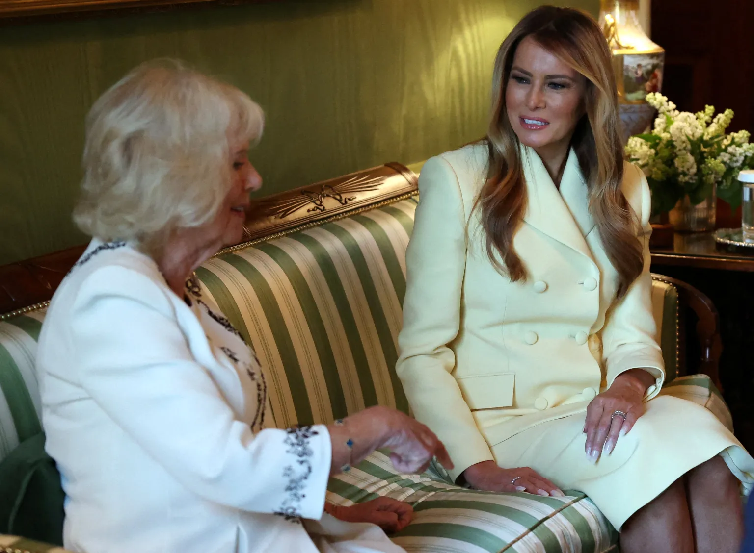 Во септември, Меланија носеше светло жолт фустан со откриени раменици од Carolina Herrera во дворецот Виндзор, каде се сретна со Чарлс, Камила, принцот Вилијам и принцезата Кејт.