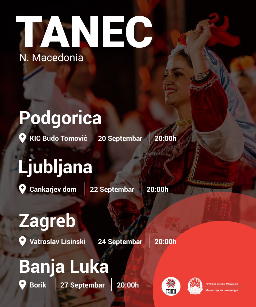 Националниот ансамбл за народни игри и песни, ТАНЕЦ, во четврток заминува на балканска турнеја под мотото „Танец – 75 години македонски код“, и тоа со концерти во Подгорица, Љубљана, Загреб и Бања Лука.