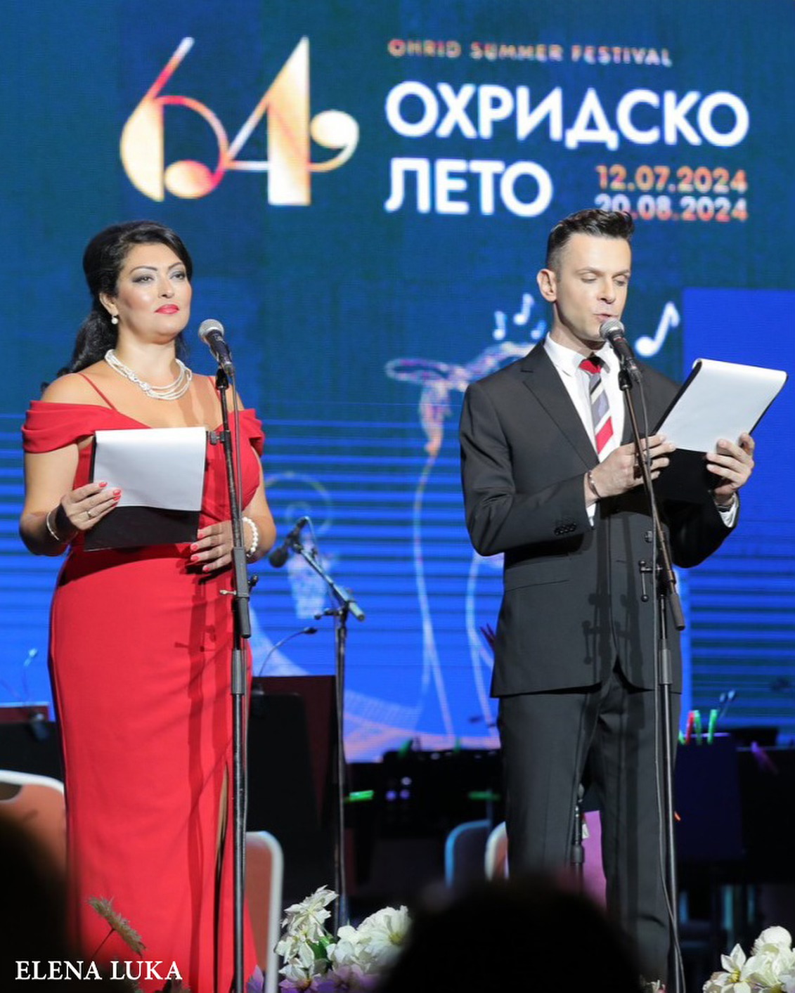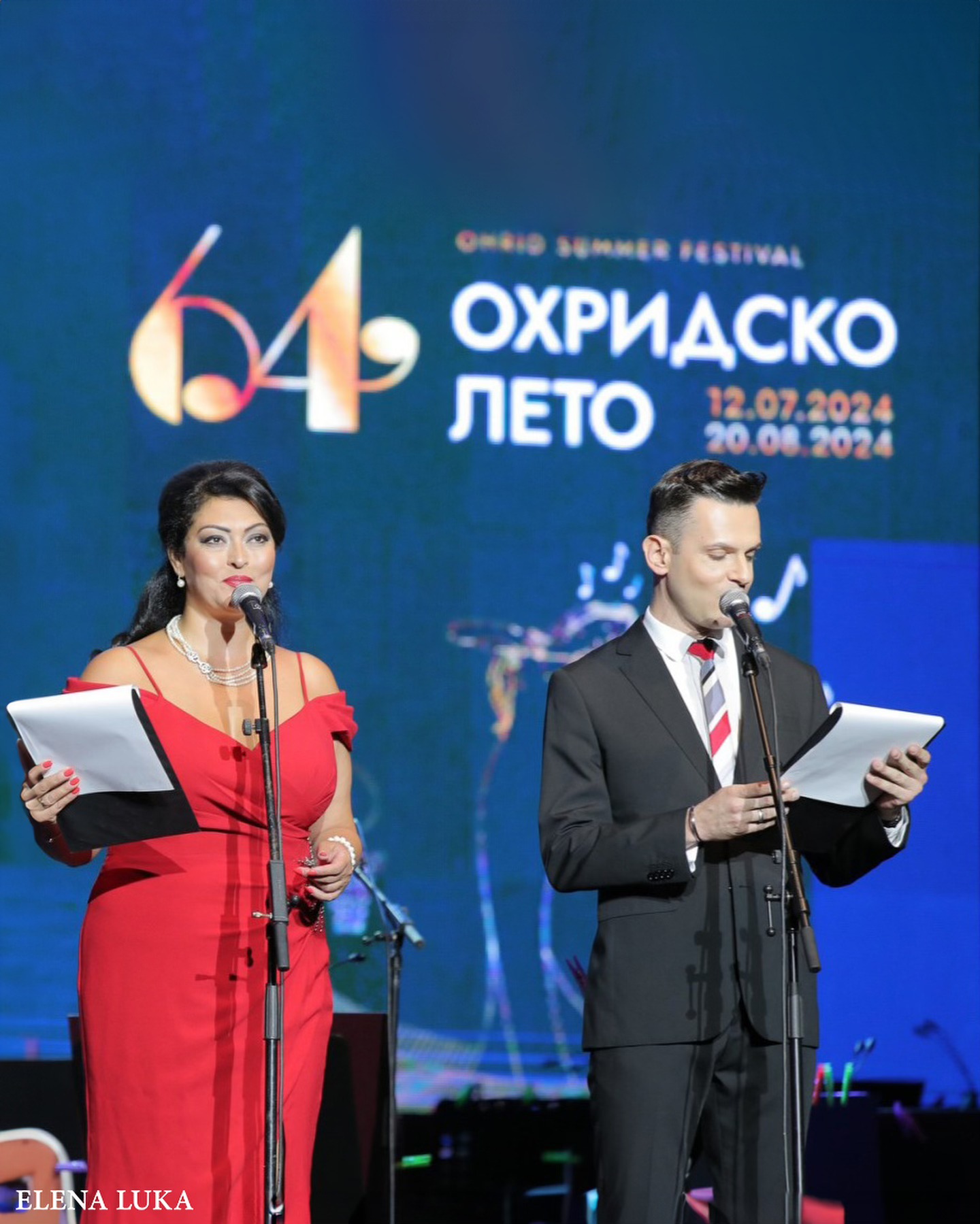 Во петокот, на 12-ти јули, свечено беше отворено 64-тото издание на фестивалот Охридско лето. На сцената на Античкиот театар во Охрид, прекрасната Татјана Стојановска која се појави како водител заедно со Борис Тноковски, носеше прекрасна креација од нашиот моден бренд ЕЛЕНА ЛУКА.