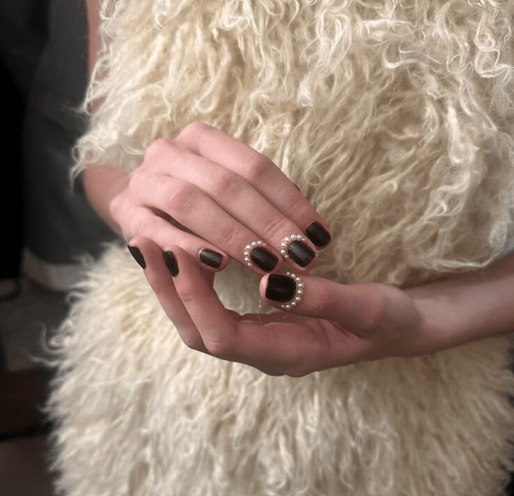 - Anna Sui: Богатите чоколадни кафени нокти ја потврдија својата позиција како омилена зимска боја, создавајќи совршен контраст со летните светли тонови.