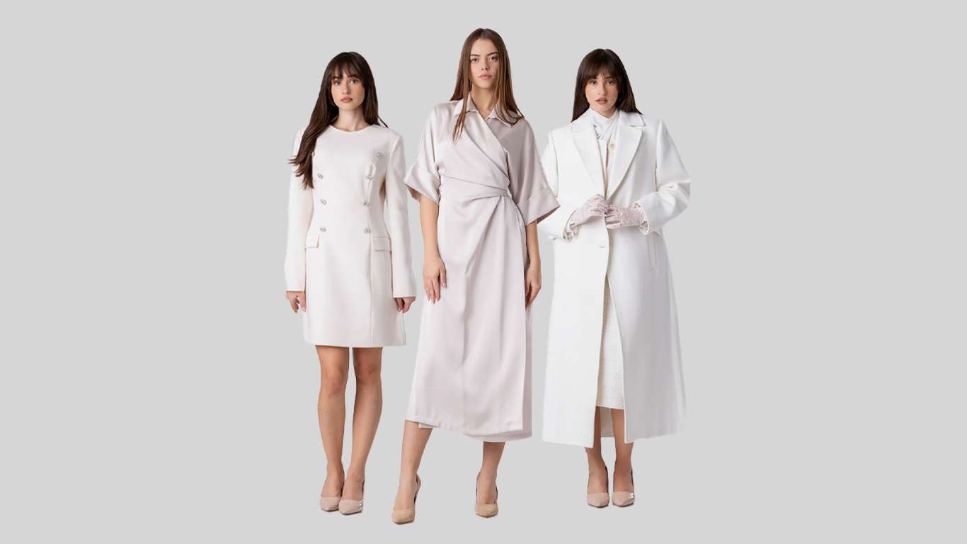 Infinity Wool Coat – палто што говори пред жената да проговори. Во тон на слонова коска и со беспрекорно структурирани реверни линии, ова парче ја претвора зимата во подиум за чиста моќ, минимализам и висока естетика.